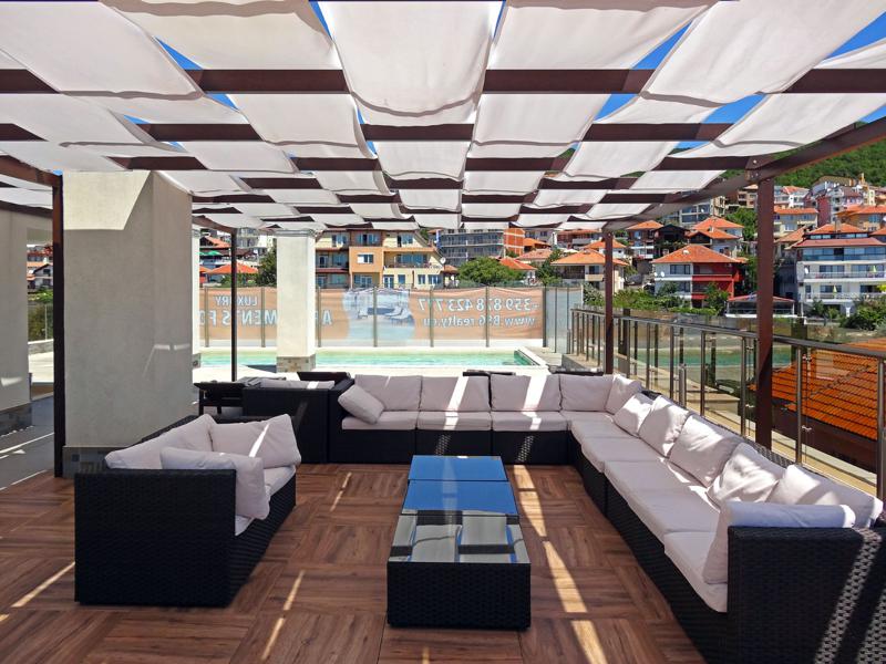 ✔ зона за отдих с басейн на покрива на сградата с 360 градусова панорама