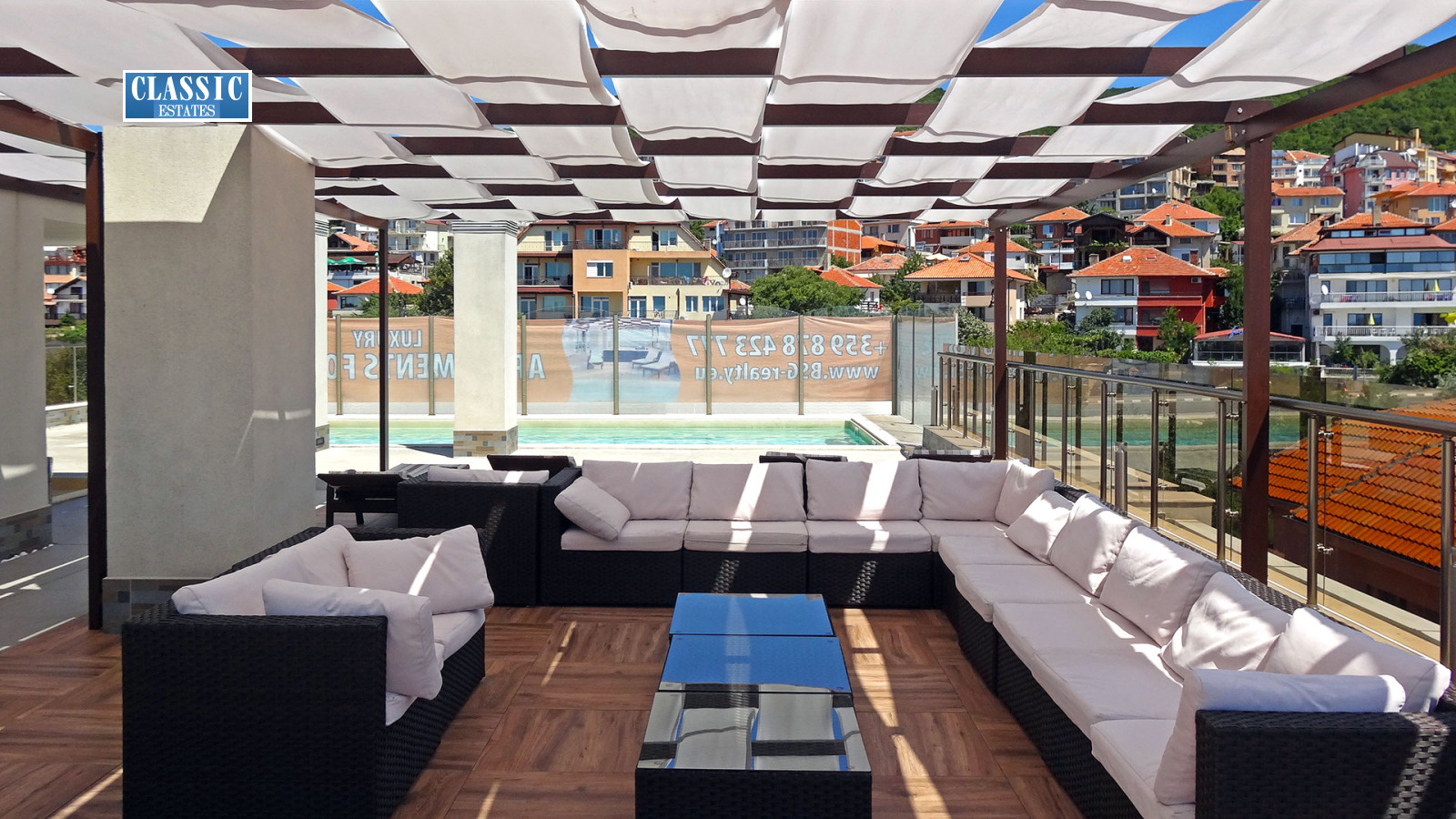 ✔ зона за отдих с басейн на покрива на сградата с 360 градусова панорама