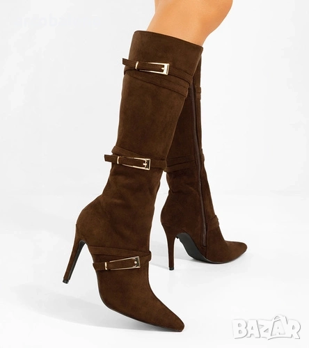 Дамски ботуши на висок ток с декоративни катарами Sadie, 3цвята