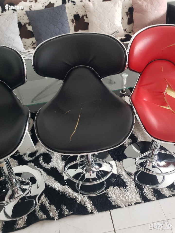 четири броя стол за бар трябва да се сменят Отгоре само кожата е скъсана четири стола за 200 лв За повече информация пишете или звънете телефон за връзка 0877 52 53 38