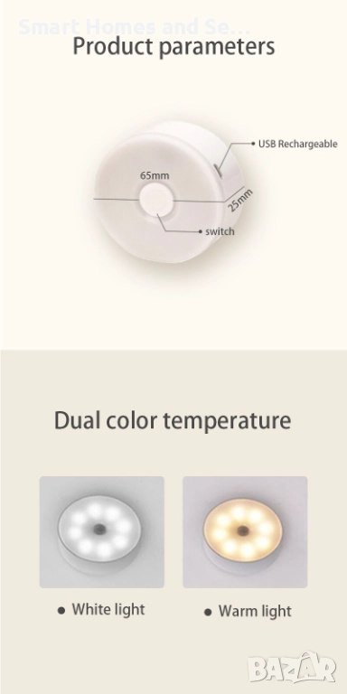 - Име на продукта: LED нощна лампа с бутон