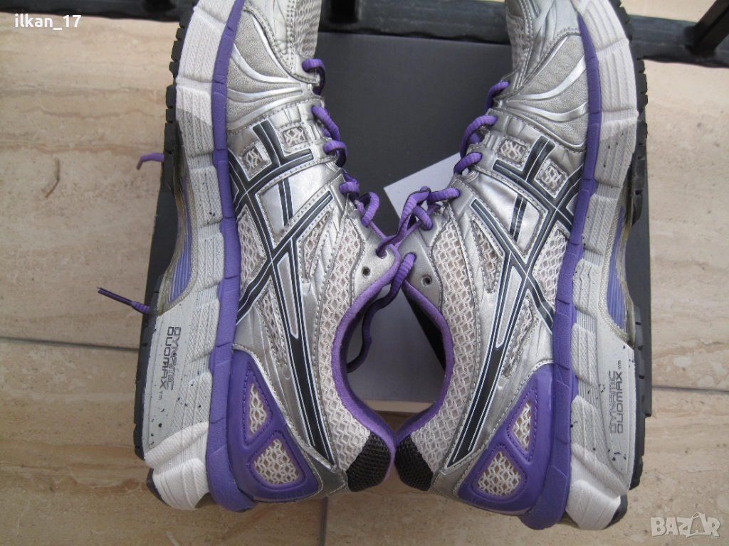 Динамична система за стабилност DuoMax за умерени свръхпронаториASICS GEL-KAYANO Нови Страхотен цвят за лятото Много красиви и удобни Най-новото издание от всепризнатата серия GEL-KAYANO затвърждава водещата си позиция в категорията структурирано омекотяване.GEL-KAYANO е значително по-лек, като същевременно запазва известната си комбинация от омекотяване и опора, която е идеална за леки до умерени свръхпронации .Вълнуваща нова технология е Guidance Trusstic, проектирана да работи с направляващата линия по външната подметка. Заедно те насърчават по-ефективната походка, като същевременно осигуряват опора на средната част на стъпалото.Clutch Counter създава плътно, поддържащо и динамично прилягане около петата ви. Освен това дава малко повече стабилност от вътрешната страна на крака ви, за да компенсира свръхпронацията.Леката горещо стопяема горна част с по-малко шевове и по-малък потенциал за раздразнение осигурява подобрен комфорт .GEL-KAYANO 18 е идеален за дълги тренировъчни бягания , като предлага както подкрепата, така и комфорта, от който се нуждаете.Технологии: 3M отразяванеСпециален отразяващ материал, който подобрява видимостта при слаба светлина. 3m Scotchlite е регистрирана търговска марка на компанията 3M.ГЕЛ за задно и предно стъпалоНамалява шока по време на фазите на удар и отдръпване на пръстите и позволява движение в множество равнини, докато кракът преминава през цикъла на походка.Насочваща линияGuidance Line поставя видим канал в средата и външната подметка, който следва центъра на натиск на крака от петата до пръстите. Резултатът е по-адаптивна платформа за бягане, създаваща по-плавен преход от удар на петата към пръстите на пръстите с всяка крачка. По този начин направляващата линия помага на бегачите да поддържат естествена, ефективна походка, особено на дълги разстояния.Biomorphic Fit горна частЕластичен материал, стратегически поставен върху горната част, който намалява струпването, когато обувката се движи, намалявайки риска от мехури и раздразнение.IGS (система за насочване при удар)Impact Guidance System (IGS) е философия на дизайна на ASICS. Тя има за цел да накара компонентите на обувките от задната част до средната част на стъпалото и предната част да работят заедно ефективно, за да позволят на тялото да работи по естествен начин. Дизайнерите на ASICS се стремят да правят комплименти, а не да коригират как се движат краката и стъпалата.Материал на междинната подметка SolyteГъбест слой между подметката и горната част, предназначен да абсорбира удара и да омекотява крака. Solyte е по-лек материал от SpEVA и EVA и се отличава с повишена издръжливост.DuraSpongeDuraSponge е издухано AHAR съединение за подобрено омекотяване и издръжливост в предната част на стъпалото. Каучукът с висока устойчивост на абразия (AHAR) на ASICS е здрава смес, използвана в тежката контактна зона на външната подметка.ComforDry чорапСтелка, поставена вътре в обувката, която осигурява омекотяване, като поддържа крака сух и по-хладен.AHAR (ASICS Високоустойчива на абразия гума)Здрав материал, поставен в критични зони на силен контакт върху обувката за изключителна издръжливост.Биоморфна кройкаBiomorphic Cut е процес на рязане и зашиване на тъкани, базиран на обширни изследвания за това как се движи тялото. Позволява максимална свобода на движение.