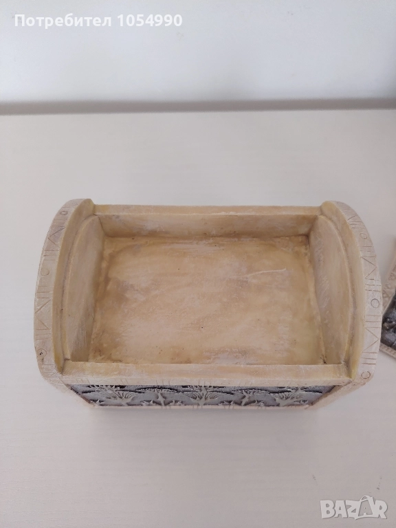Здравейте предлагам египетска кутия с две отделения. Изработена от страхотни релефни декорации в египетски стил. Както и бюст на фараон.Използва се за малки предмети или декоратитен елемент. В много добро състояние. Размери височина 20см и дължина 15см.За повече информация моля пишете на лично съобщение. Благодаря! Моля разгледайте и останалите ми предложения. Коледна оферта!