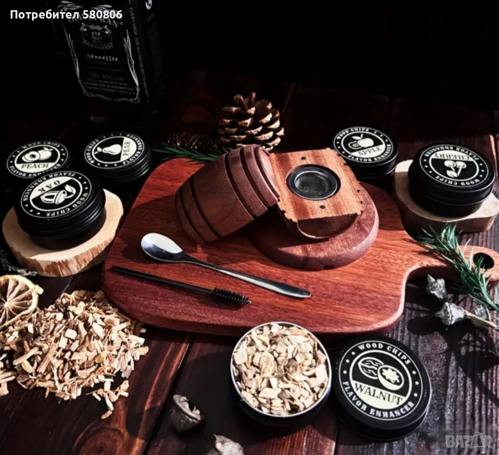 Сет за опушване на уиски / алкохол / подаръчен сет с 6 аромата / Дървени подложки / Гранитни ледчета → Обява 52677948