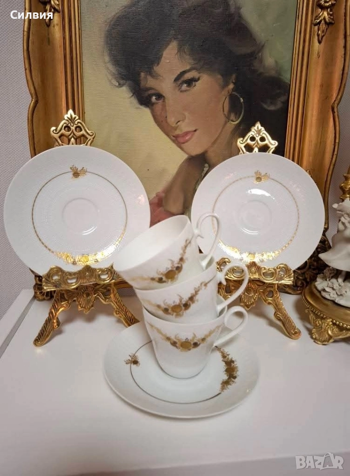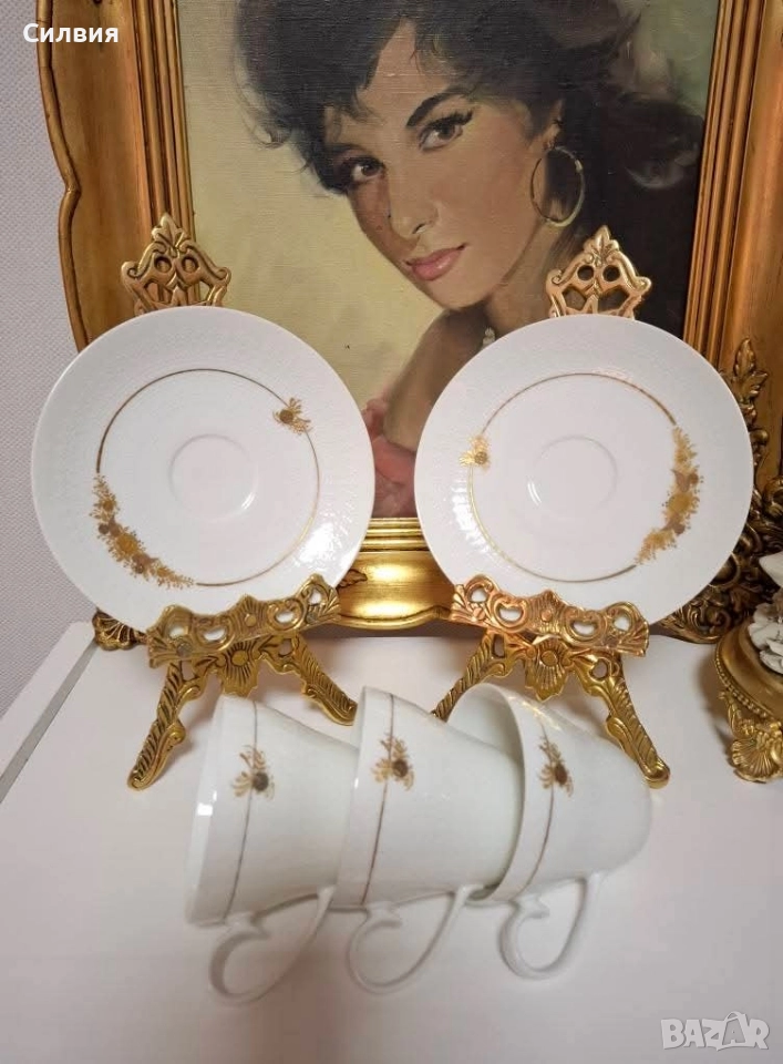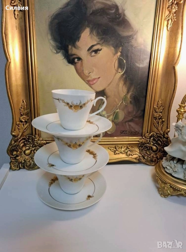Комплект от 3 чаши за кафе с чинийки - 80-те години на миналия век.