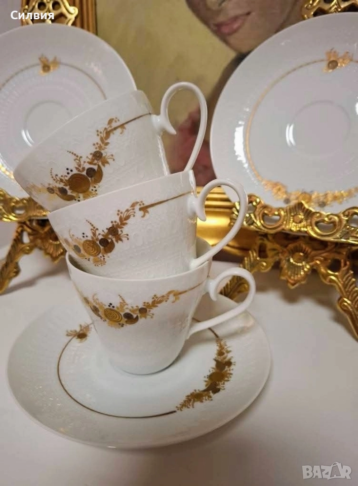 Този сервиз за кафе включва 3 чаши за кафе и 3 чинийки, всяка в безупречно състояние - истински пример за най-доброто майсторство на порцелана на Rosenthal.