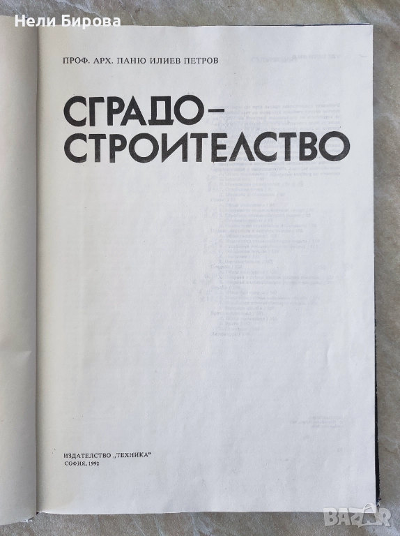 Сградостроителство, проф. арх. Паню Илиев Петков. Издателство „Техника“, София, 1992 г. Състояние: Добро.