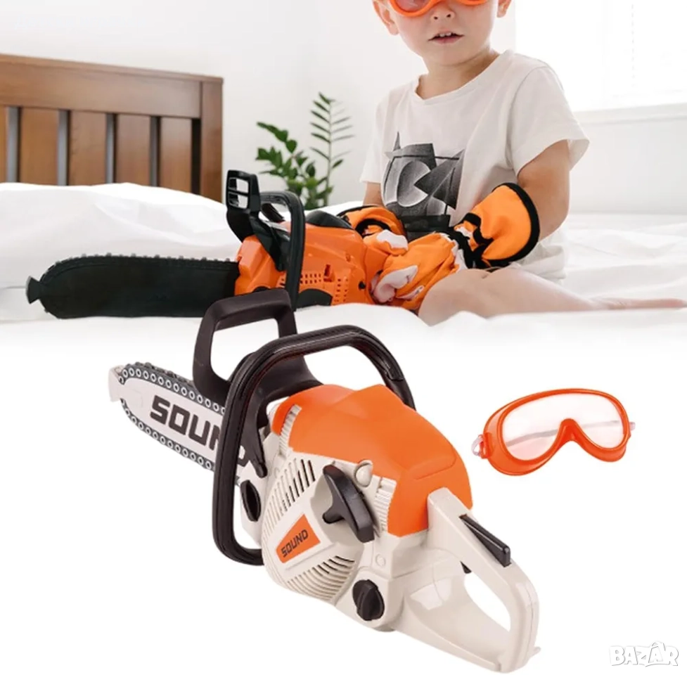 Играчката е с въртяща се верига, имитираща действието на истински трион. Просто натиснете бутона и трионът ще започне да се върти!