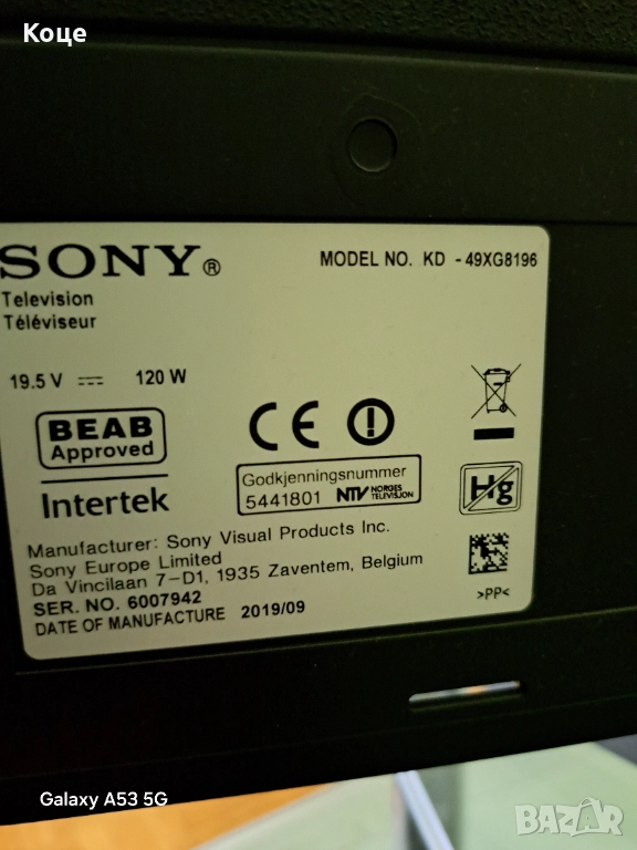 ТВ Sony 49XG8196