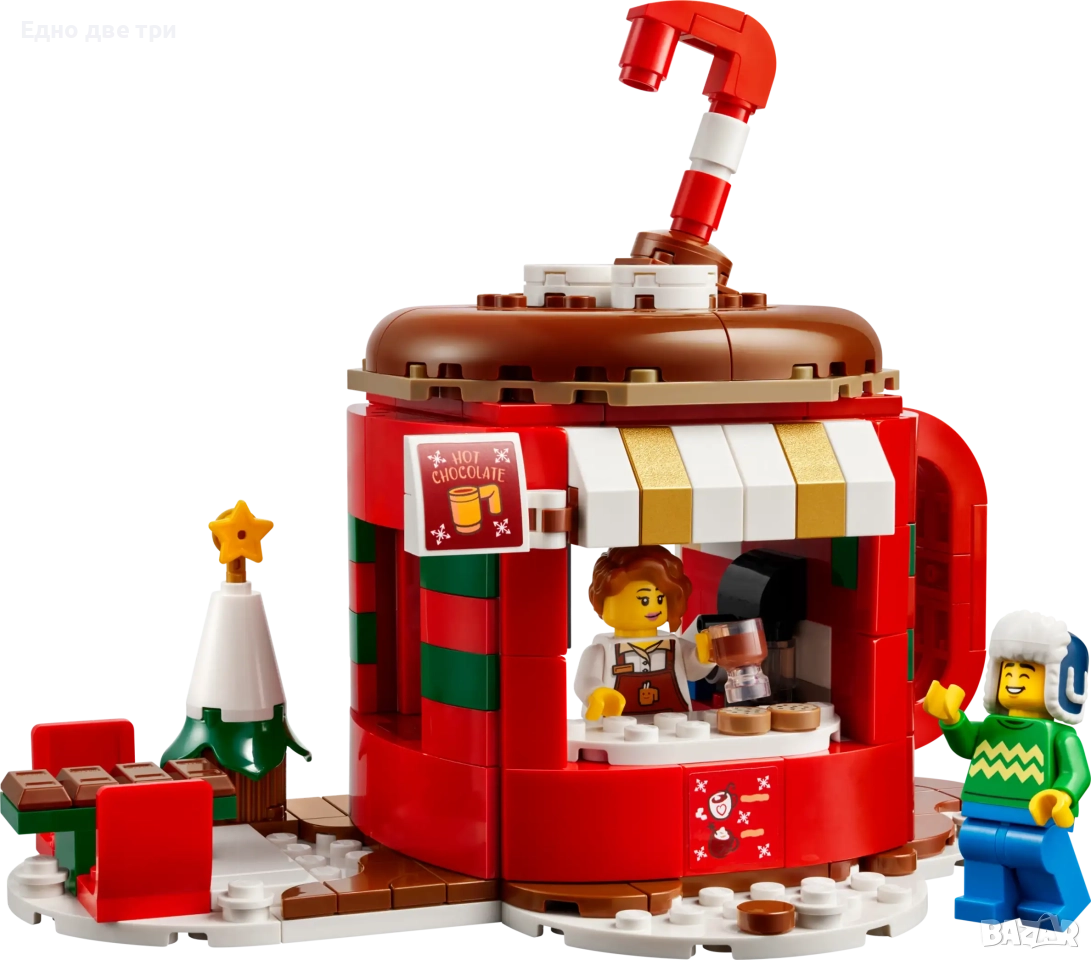 Сервирайте чаша креативност с този коледен комплект за игра. Момичетата и момчетата ще се забавляват, създавайки този модел на сергия с форма на чаша, който е покрит с тухлена пяна, маршмелоу и захарна пръчица, преди да открият сладките му детайли. Има подвижен покрив, външна зона за сядане и 2 минифигури, които предизвикват вълна от празнична ролева игра. Ще вземем нашия с допълнителни маршмелоу, моля.