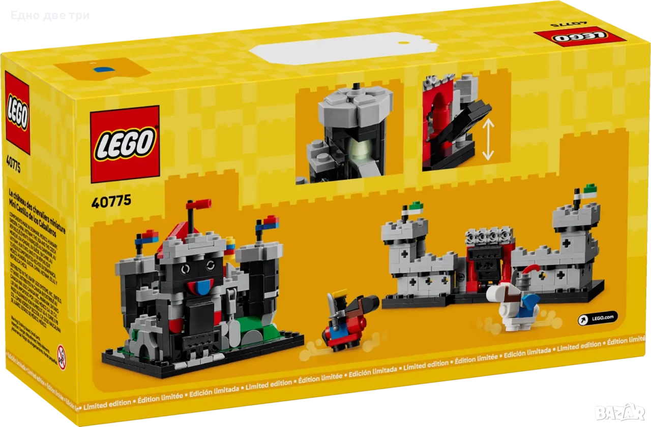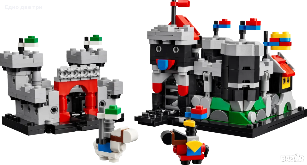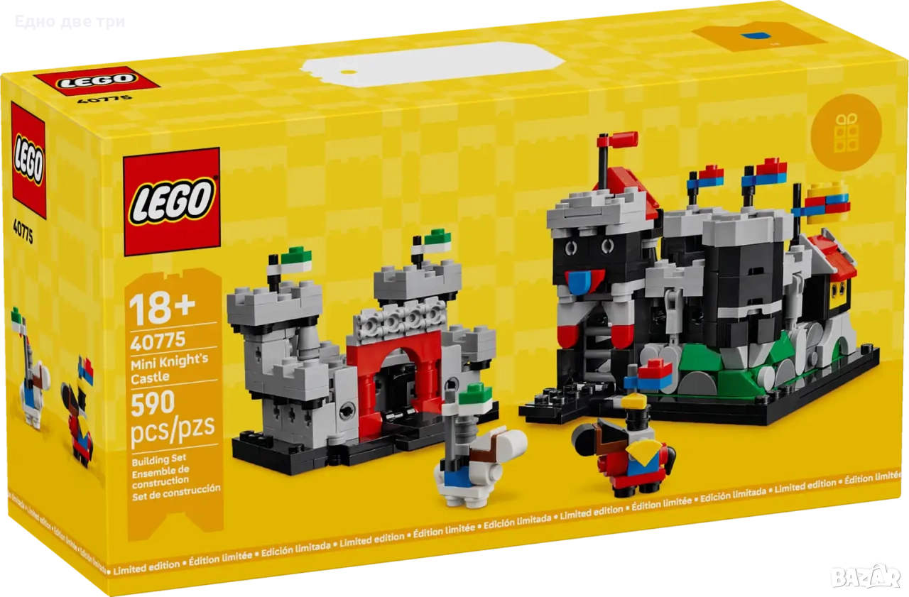 Отбележете наследството на LEGO® с този комплект за сглобяване Mini Knight's Castle (40775). Страхотен средновековен подарък за фенове на 12 и повече години, тази носталгична играчка включва микромащабни версии на 6073 LEGO Knight's Castle, пуснат на пазара през 1984 г., и 6086 LEGO Black Knight's Castle от 1992 г. По-малкият замък се отваря, за да образува крепостна стена, и включва светещ в тъмното „призрак“. Този комплект за сглобяване от 590 части включва и 2 микромащабни модела на рицари на коне, носещи цветовете на замъка си.