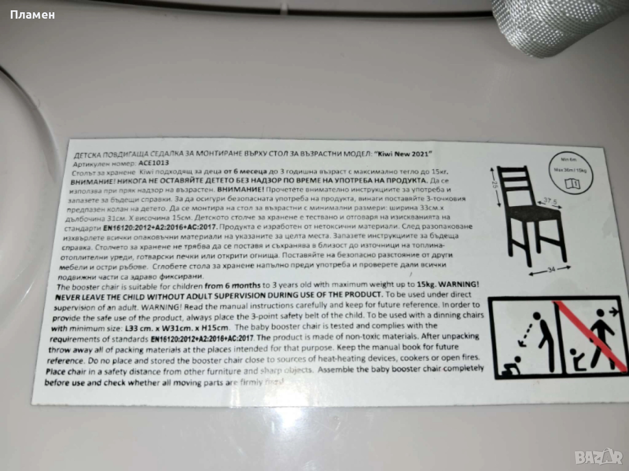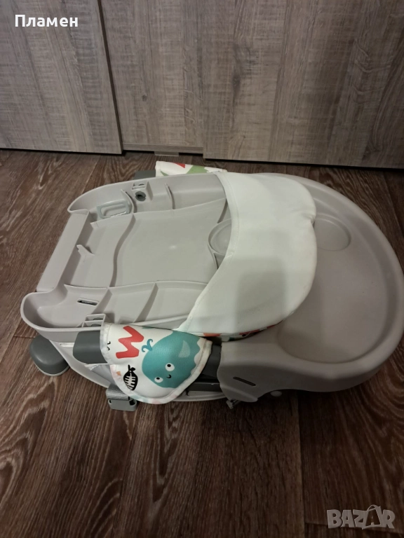 Монтажът на столчето за хранене е изключително лесен и бърз, благодарение на интуитивните колани, които позволяват закрепването му към обикновен стол както през облегалката, така и през седалката. Това прави столчето идеално за домове, където пространството се цени и всеки предмет трябва да бъде максимално функционален.