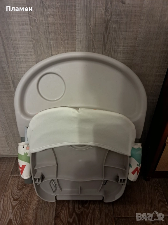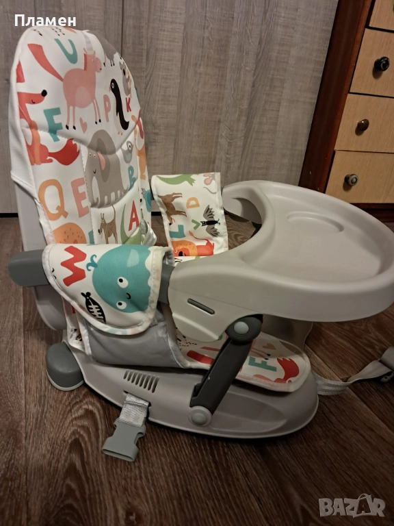 За безопасността на вашето дете се грижи здравият 3-точков колан, който гарантира, че малкото изследовател няма да се изплъзне по време на хранене. Таблата на стола е проектирана с мисъл за удобство – с еднослойна структура и специална поставка за чаша, което улеснява почистването и поддържането на хигиена.