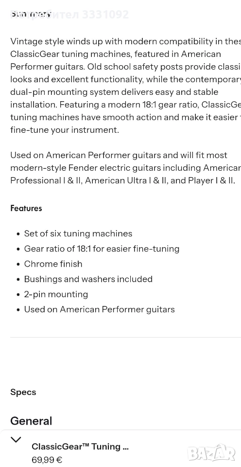 Fender ClassicGear™ ключове за китара → Обява 52679167