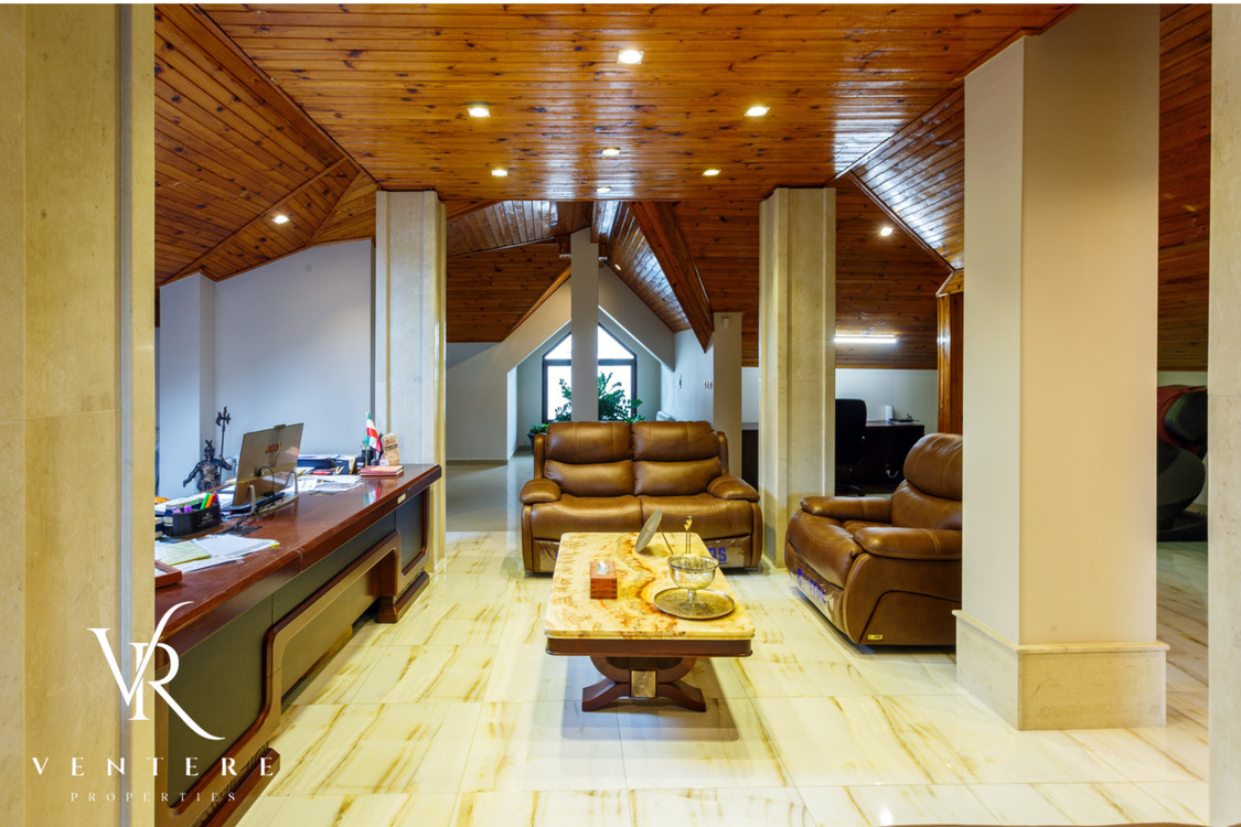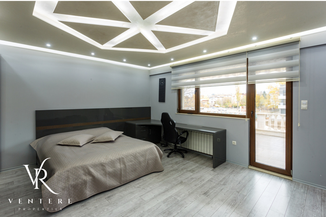 Изискана резиденция с пет спални и пет бани, разположена в престижния квартал Витоша, предлагаща луксозен живот с невероятна гледка към планината. Тази забележителна къща се отличава с елегантен ориенталски дизайн, създаващ атмосфера на спокойствие и изтънченост.