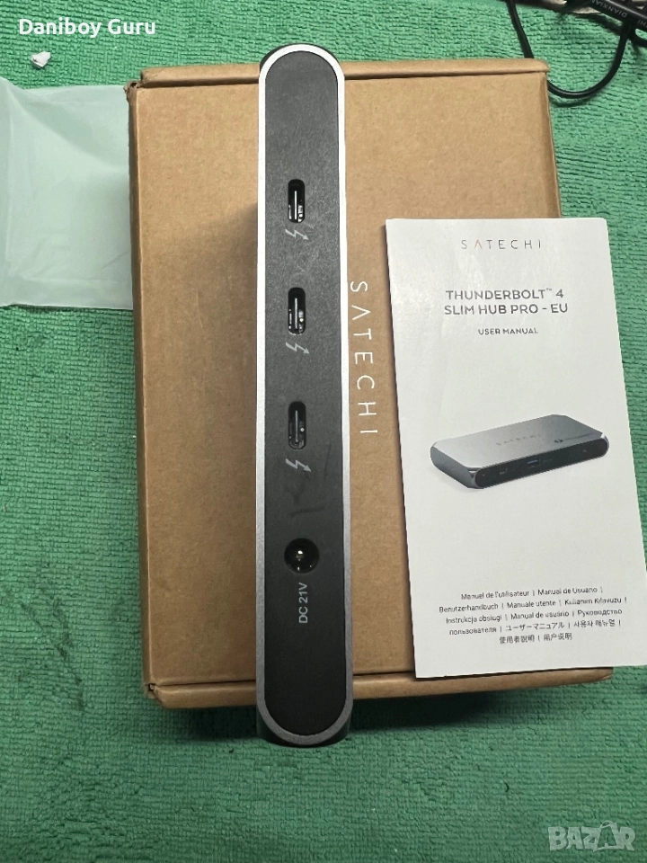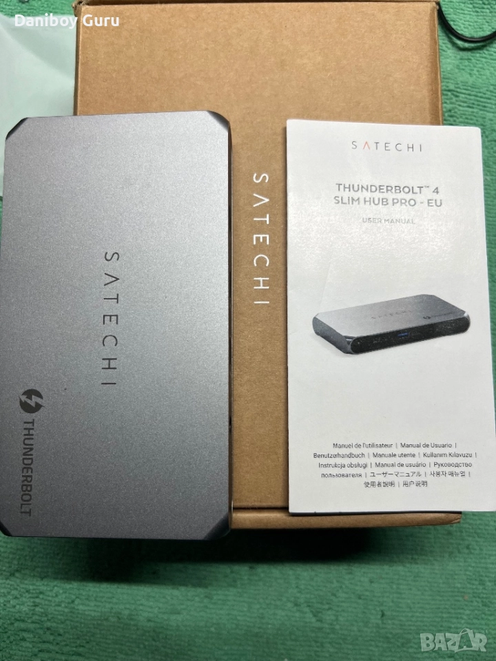 Докинг станция Satechi Thunderbolt 4 Slim Hub Pro, USB C 100W зареждане, един 8K или два 4K дисплея, 4 Thunderbolt 4 порта, USB 3.2 Gen2, за Mac/Windows, MacBook Air/Pro M5/M4, Dell, Surface, Lenovo
