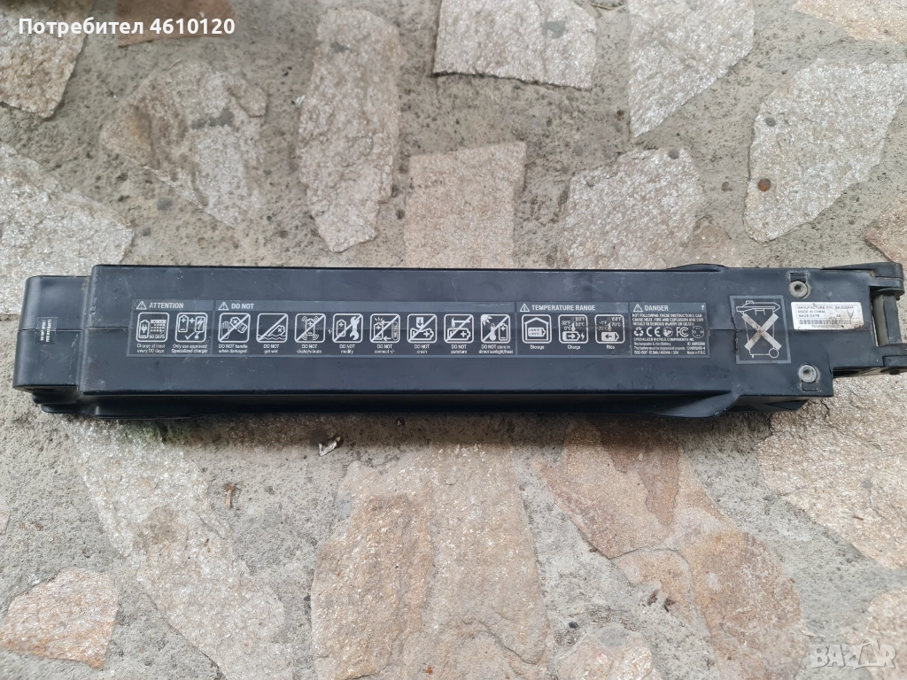 Продава се във вида от снимките. Състояние незнайно. Нямам такова зарядно или велосипед за да тествам. Има светлинна индикация като се натисне. 12.5 Ah, 36 v