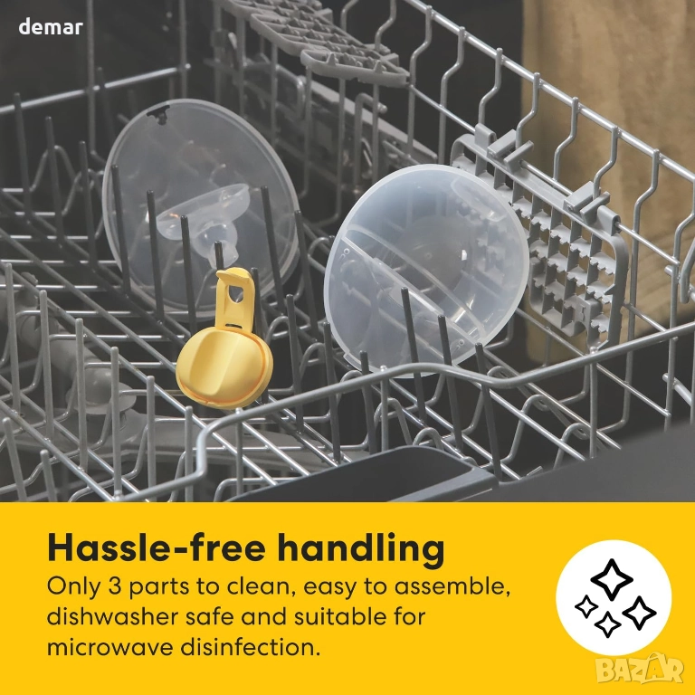 Този дизайн използва научно обоснована технология за изпомпване с широкоъгълен щит и множество регулируеми нива, които имитират естествен ритъм на хранене за по-бързо и по-ефективно изцеждане на кърма. Оформен е така, че да се побира удобно в сутиен с леки, анатомични компоненти и се предлага с няколко силиконови вложки, подходящи за широк диапазон от размери на зърната. Ежедневната употреба е опростена само с няколко лесни за почистване части, интуитивни контроли и функция за памет. Бързо зареждащата се батерия осигурява няколко сесии с едно зареждане, докато компактната, тиха конструкция и USB-C портът го правят практичен за дискретно изпомпване у дома или в движение.