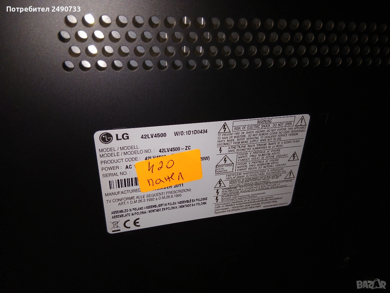Телевизор lg 42lv4500 на части → Обява 52679600