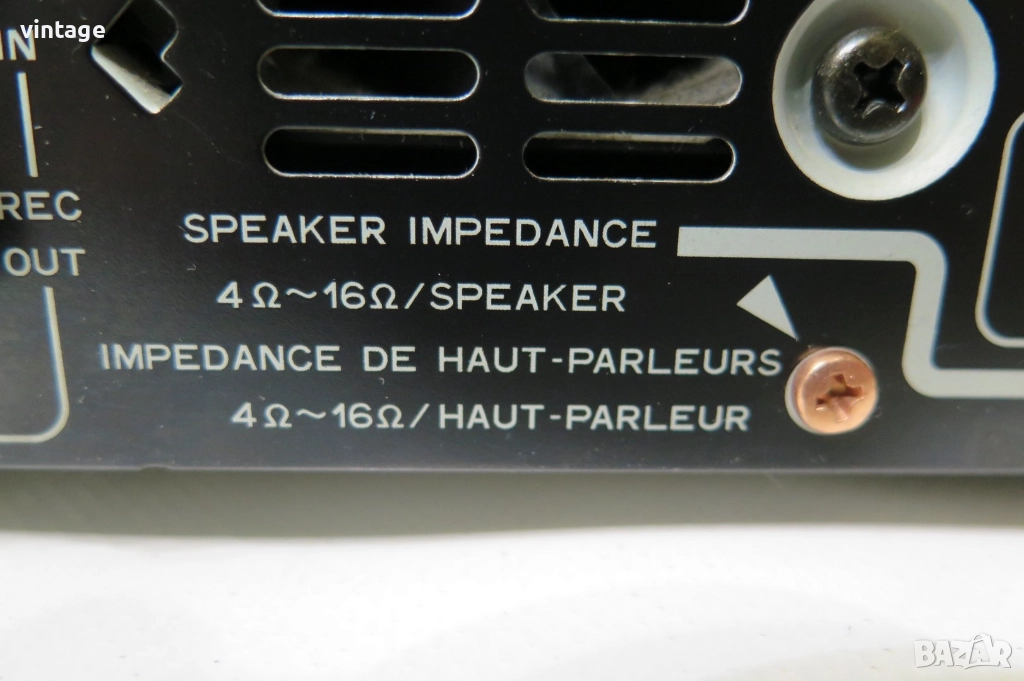 Транзисторен стерео усилвател, отличен технически, много добър външен вид. Корекции: bass +/- 9dB at 100 Hz, treble =/- 9dB at 10 kHz, loudness, source direct. Дистанционно управление не е налично. Приложените снимки и видео са реални!