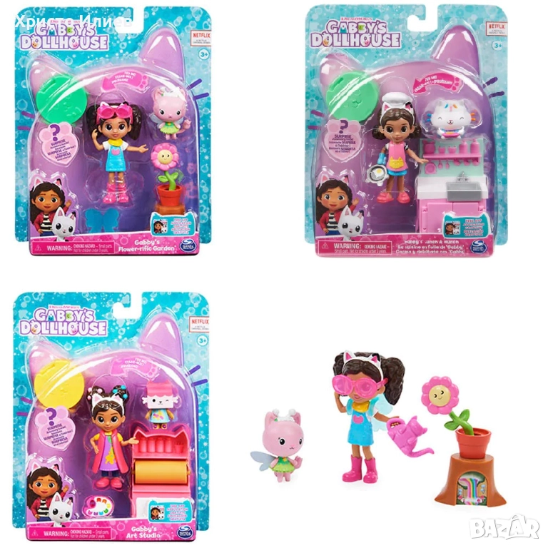 Игралният комплект от Gabby's Dollhouse ще се хареса на всички малчугани. Те ще могат да развихрят въображението си и да измислят най-различни игри и истории. Страхотната кухня на Габи е оборудвана с мивка със шкаф и тостер. Натиснете готварската шапка на Габи, за да завъртите тигана в ръката ѝ. Рaзoпaкoвaйтe и кутията за дocтaвка, за да oткpиетe страхотна фигурка, която да използвате в игрите.