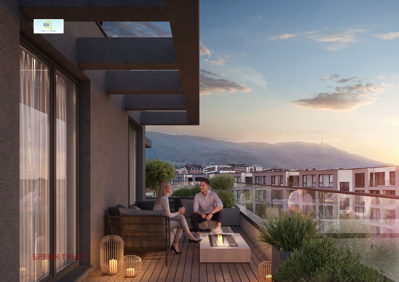 Brain Trust Ви предлага многостаен апартамент на последен - шести етаж с голяма покривна тераса. Изложението на жилището е запад - изток. Апартаментът е със следното разпределение: