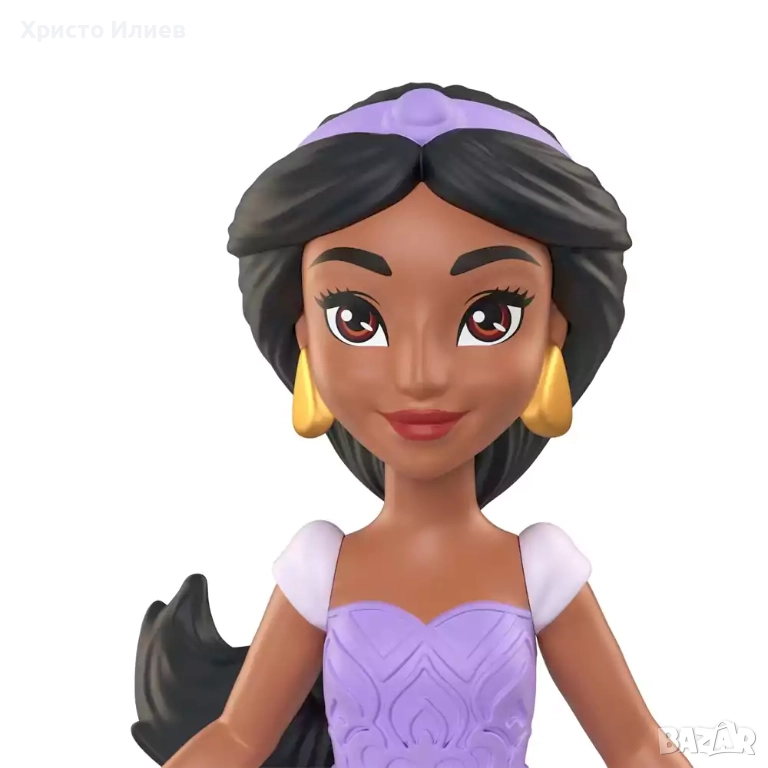 Мини кукла Ясмин в лилав тоалет от Disney Princess – вълшебна играчка, вдъхновена от любимата анимация на Дисни! Тази елегантна фигурка впечатлява с блестящата си лилава рокля, украсена с ориенталски мотиви, златисти обици и коронка в тон. С подвижни крайници и сваляема пола, малката принцеса е готова за приключения в приказния свят на Аграба.