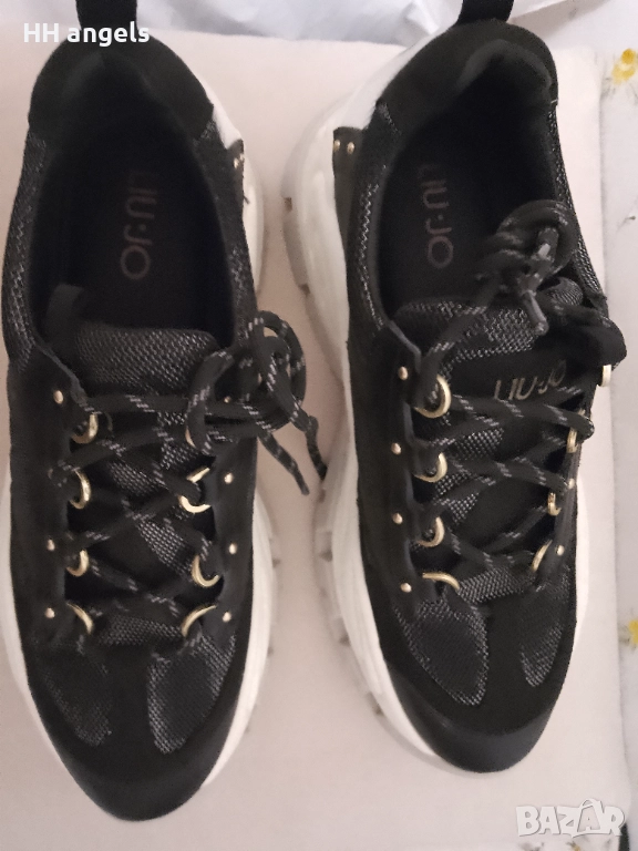 Нови сникърси на Liu Jo модел:wave 01 BA0023 TX092 в черен цвят,38 номер със стелка 25 см,пробвани само веднъж за кратко(неулучен размер),супер комфортни и удобни,закупени за над 300 лв,5 см дебелина на подметката.Горен материал: естествена кожа, текстил, облицовъчен материал: естествена кожа, екологична кожа, материал на стелката: текстил, Материал на външната част: синтетичен.Неразличими от нови.