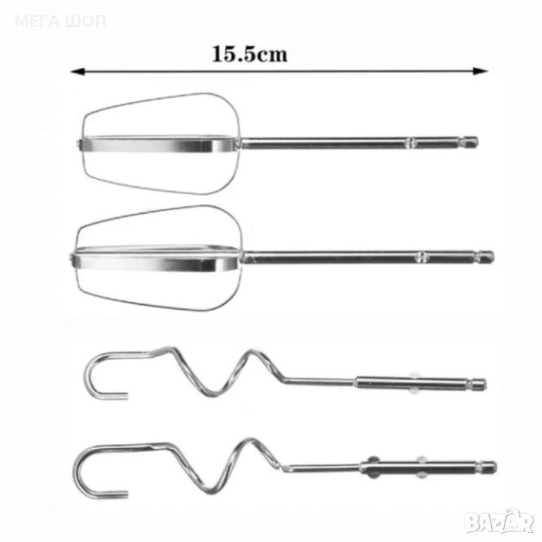 Бъркалки: 4 броя (2 за миксиране, 2 за месене);