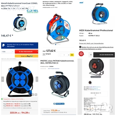 Продавам качествени маркови немски удължителни макари на различни марки по 40метра. Всички макари са здрави и с работещи и си имат написани цени коя колко струва. Макарите са оригинални немски и са внос от Франция. Пращаме с опция преглед и тест с куриерска фирма еконт може и лично предаване за гр. Шумен.