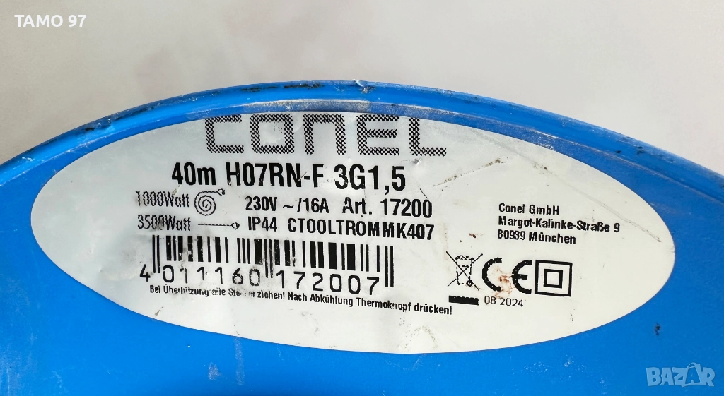 1. Conel 17200 H07RN-F 3G1.5mm² IP44 1000W-3500W / 230V с 3 гнезда 40 метра - 110лв / 56.24евро / Нова е 146.47евро
