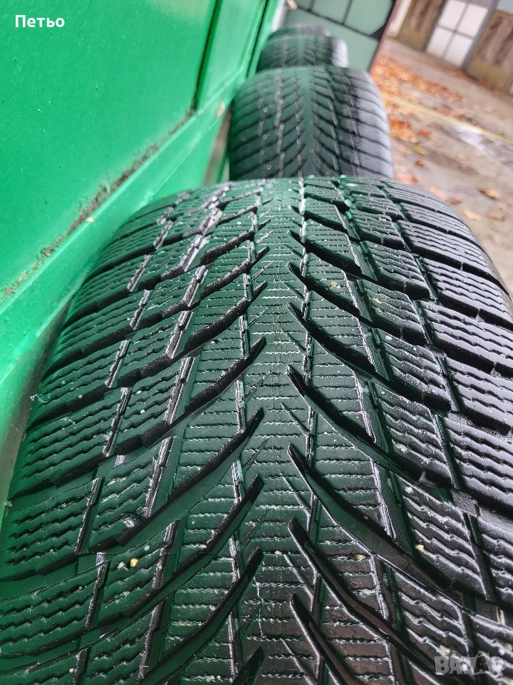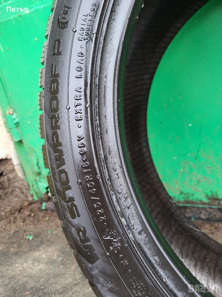Зимни гуми Нокиан WR Snowproof 225/45/18, 95V XL с борд, 7мм дълбочина на грайфера. Гумите са карани 1 зима, много малко километри, просто са купени с по-стар ДОТ 5020. Почти неразличими от нови.