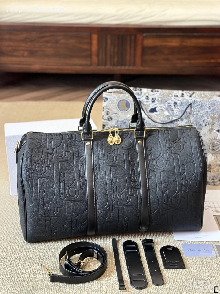 Черната пътна чанта на Диор е удобен и стилен аксесоар, подходящ за пътене или ежедневно ползване. Размер 50.Пътна чанта Dior. Тазгодишният хит на класиката в тежка категория съчетава два различни стила - готин и елегантен, интегрирайки модата и индивидуалността на новото поколение .