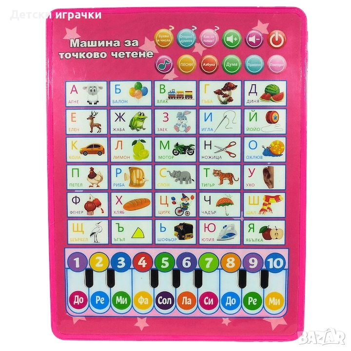 С дъската децата могат да учат азбуката, спелуване, смятане и много други, чрез забавни игри и песнички.