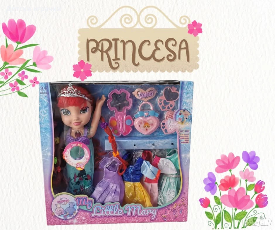 Тя е облечена като принцеса и придружена от няколко сменяеми рокли и аксесоари като огледало, чанта и гребени.