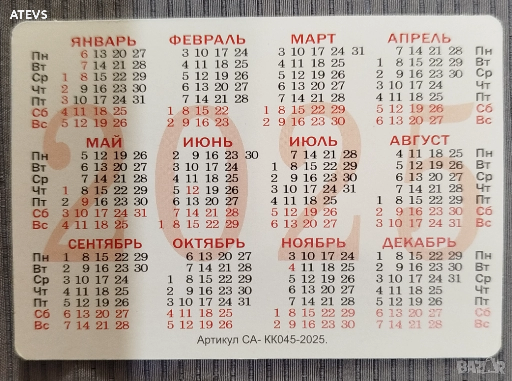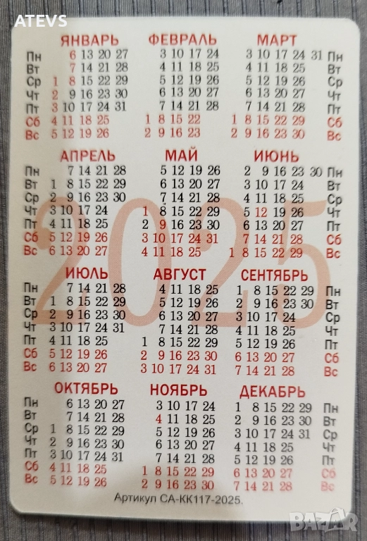 Нови руски джобни календарчета за 2025 г. Цена - 1 лв./0,51 евро за брой