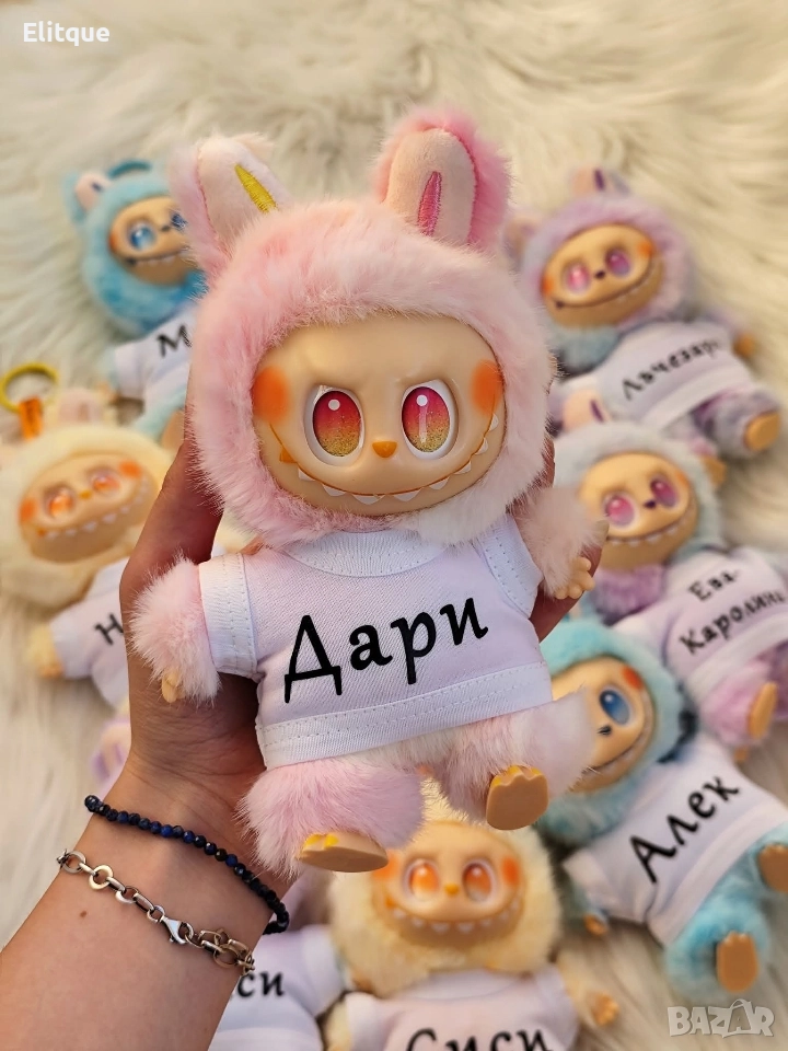 📏 Височина: 17 см | Ширина: 12 см (с ръцете) 🎁 Изпраща се в кутия 👕 С дрешка и име по избор ✅ Цена: 30 лв (≈ 15.35 €) ✨ Може и без дрешка с име ✅ Цена: 20 лв (≈ 10.25 €) Плюшена играчка Лабубу – 25 см 🧸 С дрешка: 30 лв (≈ 15.40 €) 🧸 Без дрешка: 25 лв (≈ 12.80 €) 🎁 Опакована в кутия Цветове: 🔹 Тъмно син 🔹 Светло син 🔹 Розов 🔹 Лилав 🔹 Зелен ✅ По 1 брой от цвят
