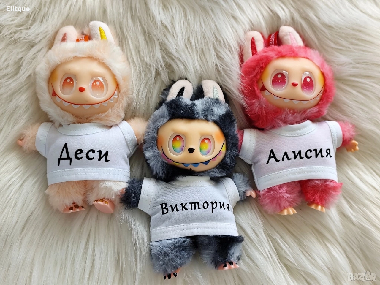 📏 Височина: 17 см | Ширина: 12 см (с ръцете) 🎁 Изпраща се в кутия 👕 С дрешка и име по избор ✅ Цена: 30 лв (≈ 15.35 €) ✨ Може и без дрешка с име ✅ Цена: 20 лв (≈ 10.25 €) Плюшена играчка Лабубу – 25 см 🧸 С дрешка: 30 лв (≈ 15.40 €) 🧸 Без дрешка: 25 лв (≈ 12.80 €) 🎁 Опакована в кутия Цветове: 🔹 Тъмно син 🔹 Светло син 🔹 Розов 🔹 Лилав 🔹 Зелен ✅ По 1 брой от цвят