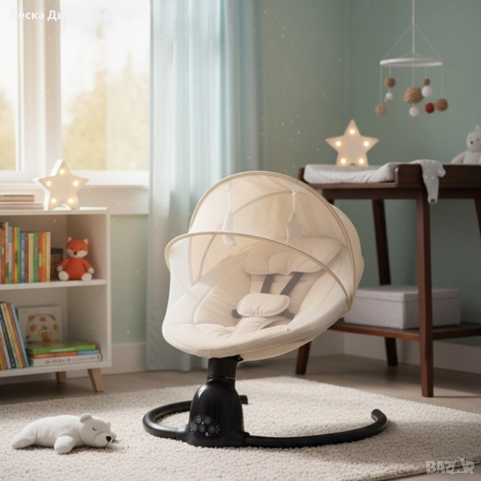 Интелигентен бебешки шезлонг с Bluetooth, дистанционно управление и автоматично люлеене