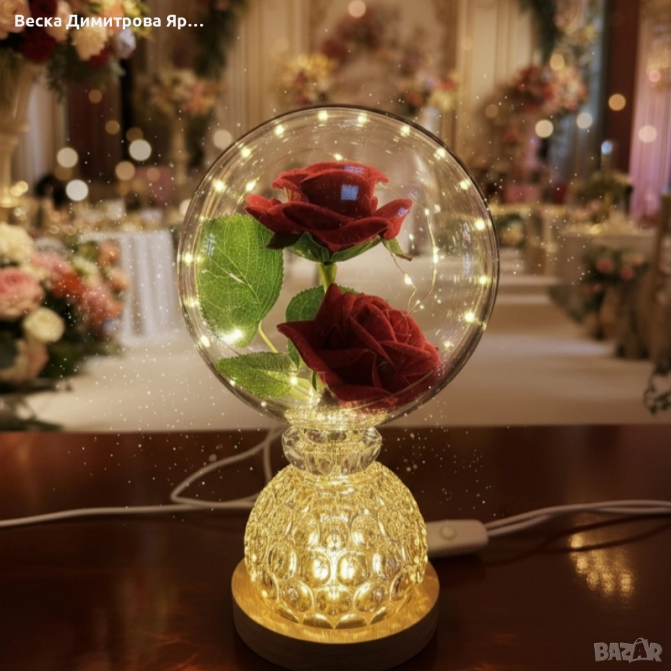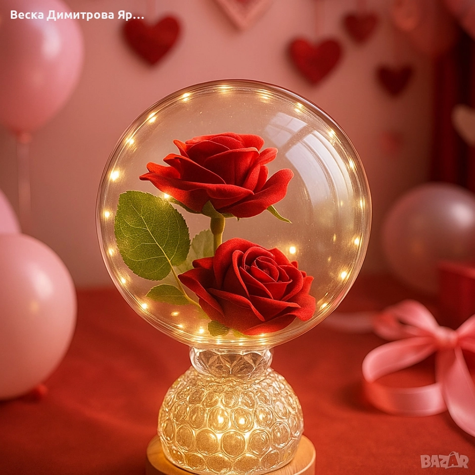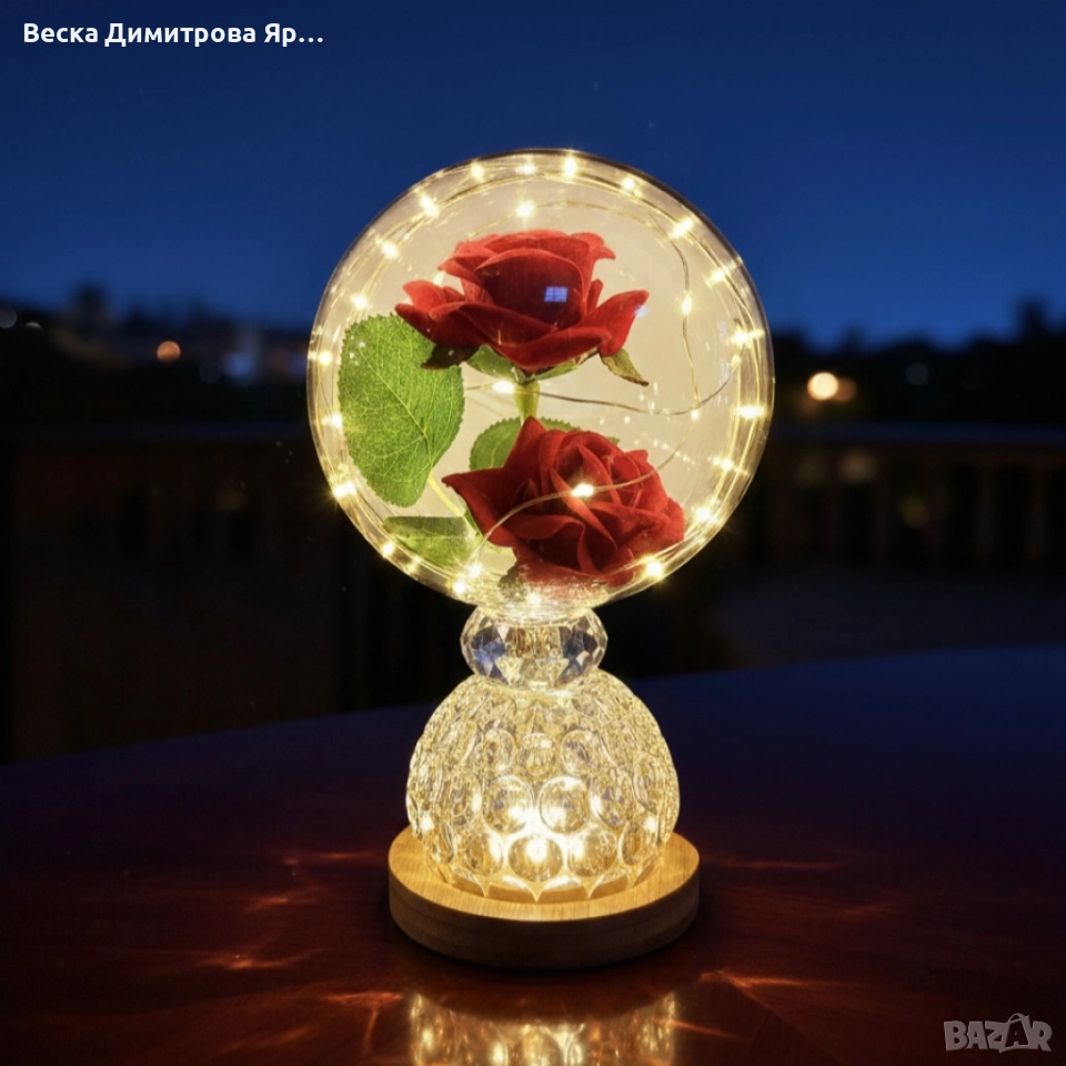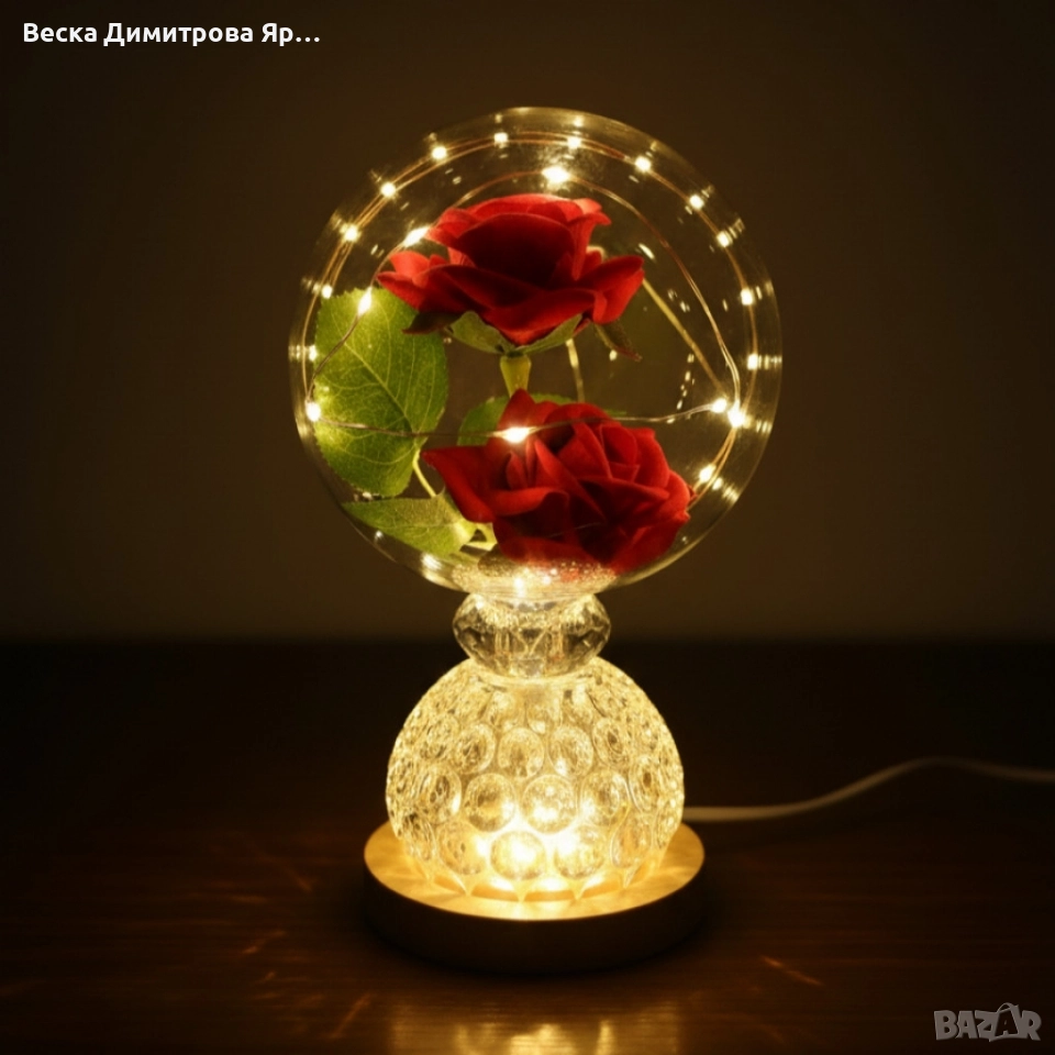 Лампа с вечни рози и топла LED светлина – подарък, който не увяхва → Обява 52684942