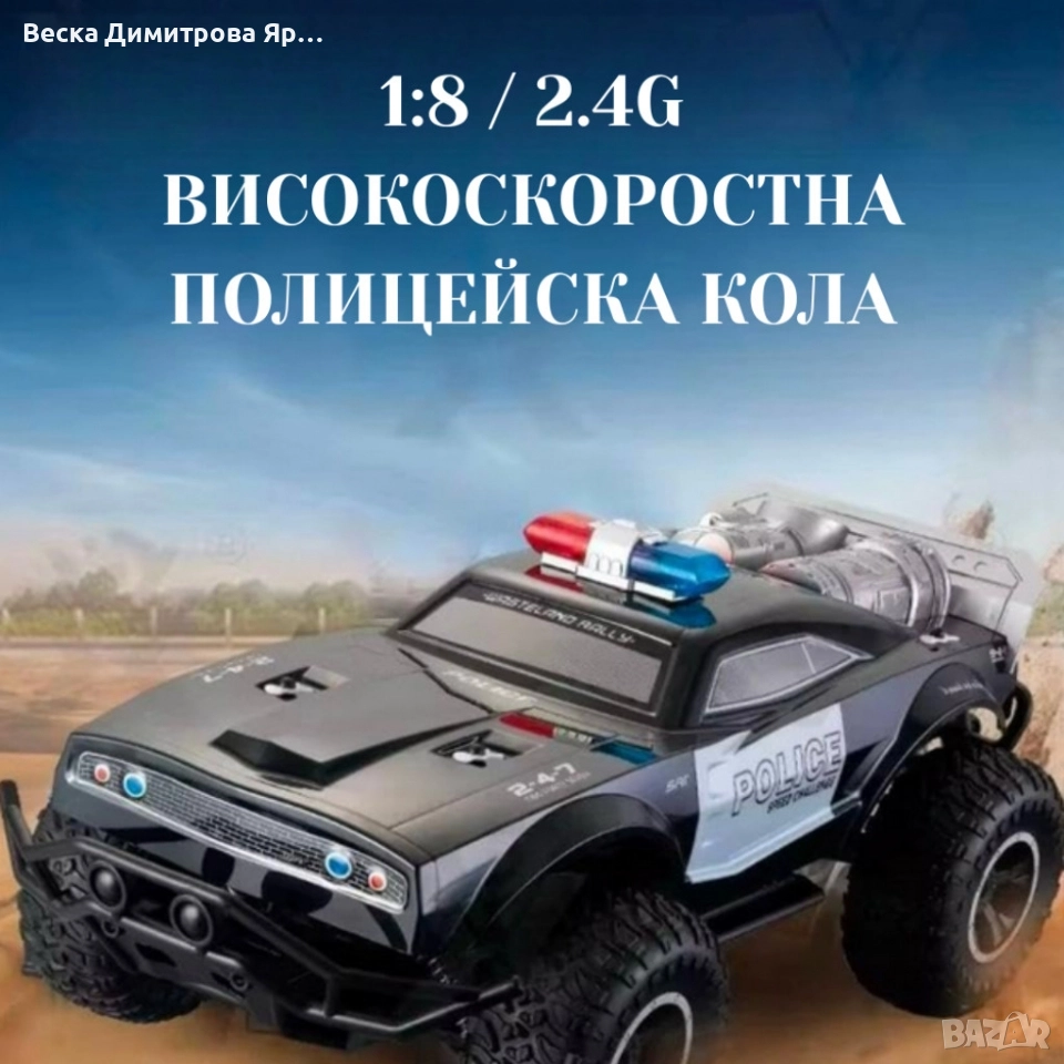 Създаден за деца над 6 г., моделът впечатлява с реалистичен полицейски дизайн, черен корпус със сребристи панели и червено-сини светлини. Удобното пистолетно дистанционно осигурява прецизен контрол.