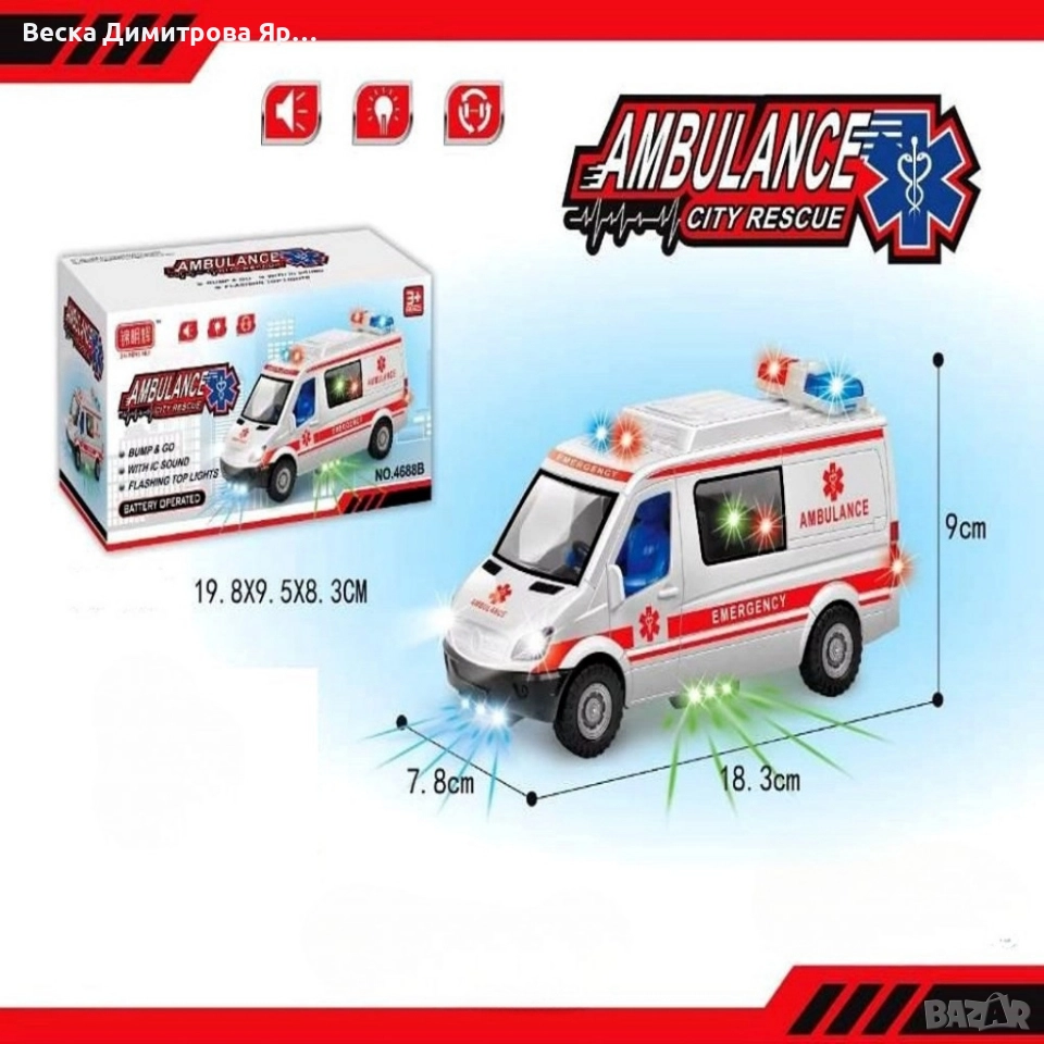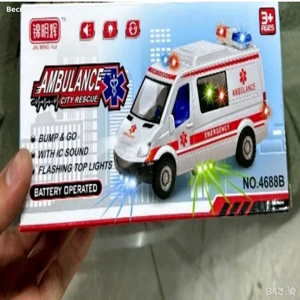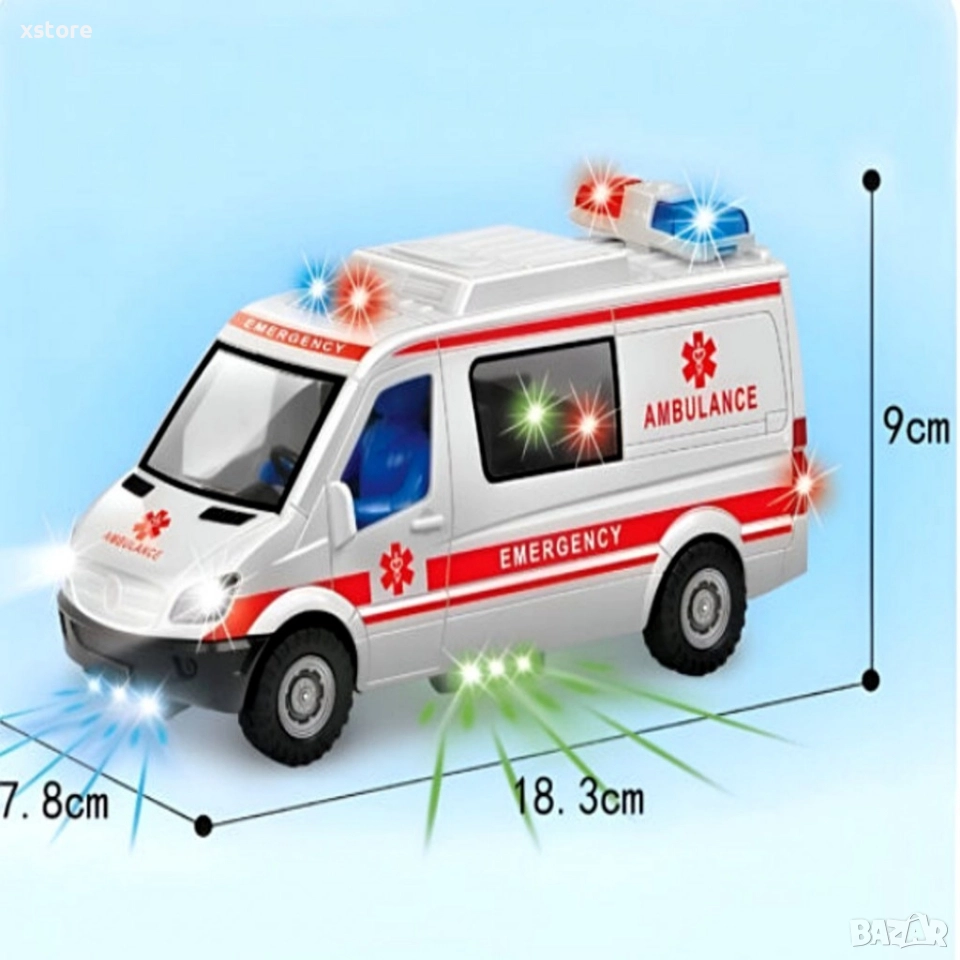 линейка със светлини и звуци ще го грабне от първото пускане! Благодарение на системата Bump & Go, тя се движи сама и сменя посоката при препятствия, докато мигащи лампи и реалистична сирена превръщат стаята в спасителна мисия. Играчката развива въображението и координацията, като вдъхновява ролеви игри – „спешен случай“, „спаси пациента“. Изработена от здрава пластмаса, с ярък бял корпус, червени ленти и медицински символи.Размер: 18.3 × 7.8 × 9 см;Функции: автоматично движение, светлини, звуци;Захранване: батерии (не са включени);Подходяща възраст: 3+.