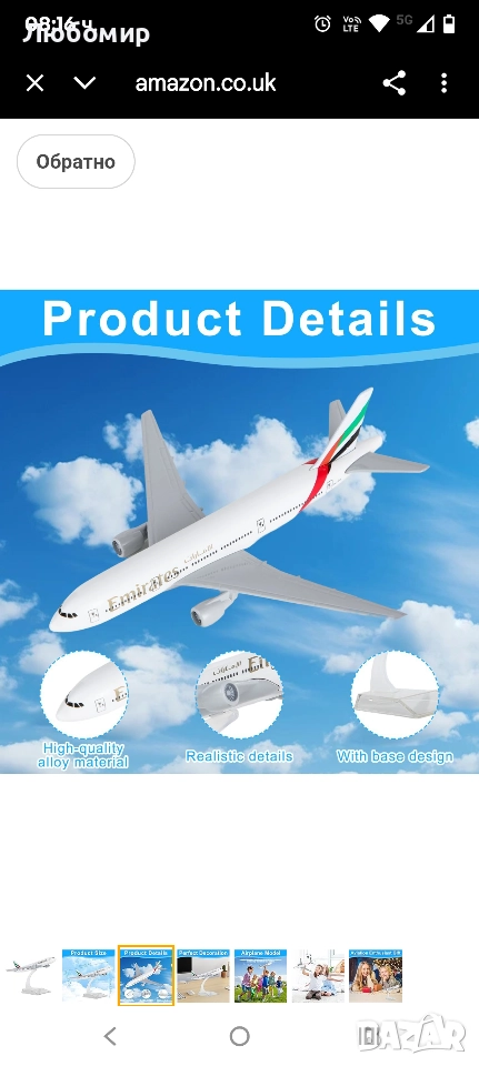 ⚙️ Висококачествена конструкция от цинкова сплав – Над 90% от корпуса на самолета е изработен от устойчив на ръжда материал за изключителна здравина с ултрагладка основа от ABS пластмаса. Всеки модел на самолета е ръчно боядисан в ярки, гланцови покрития и пресъздава точно истинския самолет 777.