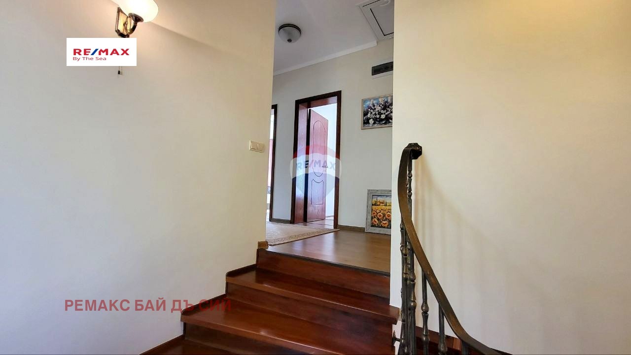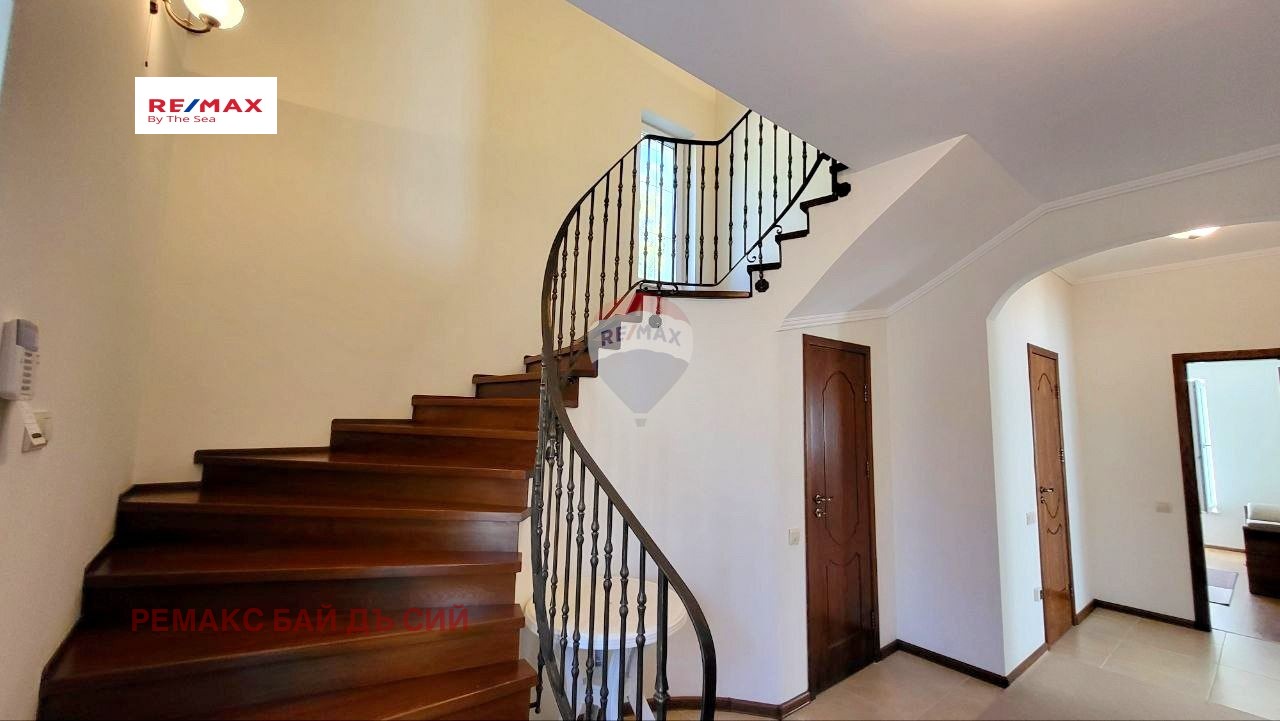Първи етаж се състои от просторна дневна с преход към кухня и трапезария с излаз към веранда от двете стаи, кабинет/спалня, баня/тоалетна, коридор, складово помещение и вътрешно стълбище към втория етаж където са разположени трите спални, от които едната е със собствена баня/тоалетна, коридор, баня/тоалетна за етажа, две тераси.