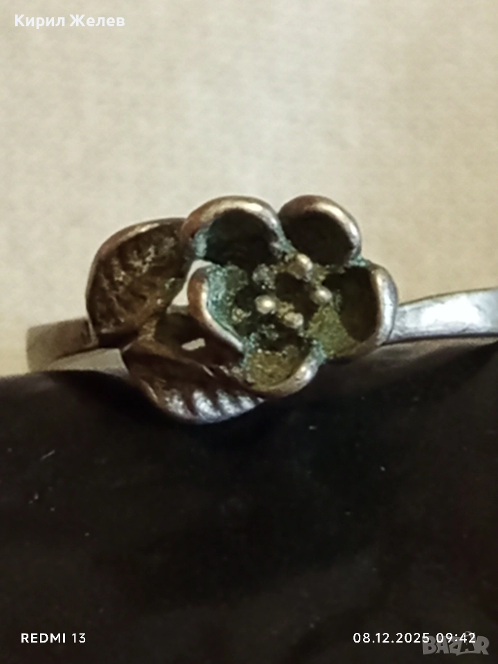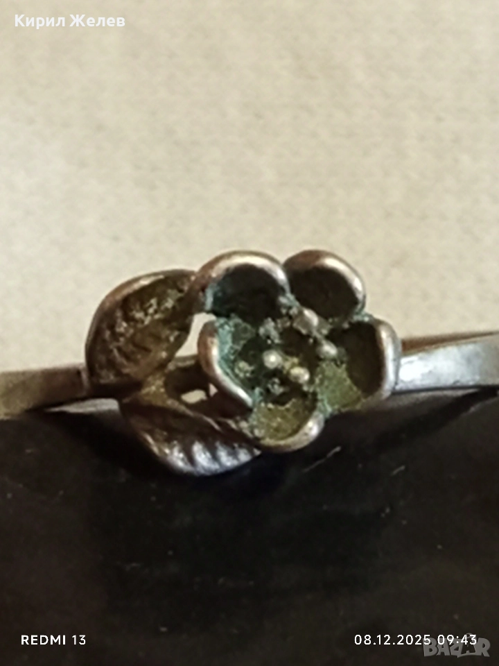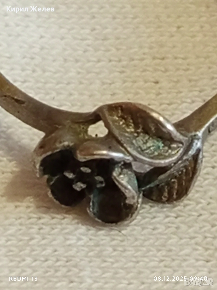 Винтидж сребърен пръстен с флорален мотив майстоска ръчна изработка 30070