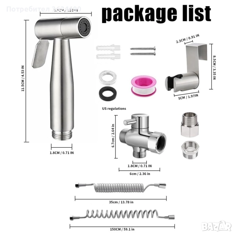 Многофункционално приложение – Освен за лична хигиена, този универсален ръчен биде душ е перфектен за почистване на домашни любимци, измиване на тоалетната, изплакване на килими и бебешки пелени.