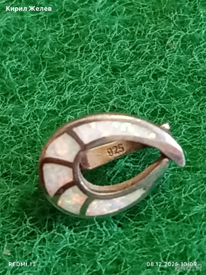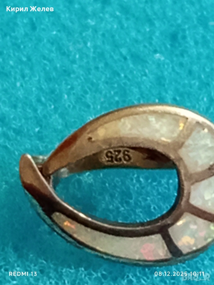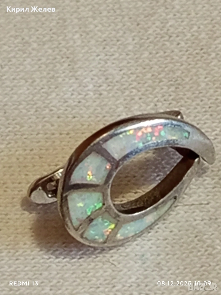 Красива сребърна обеца с инкрустиран опал елегантен дизайн 19433