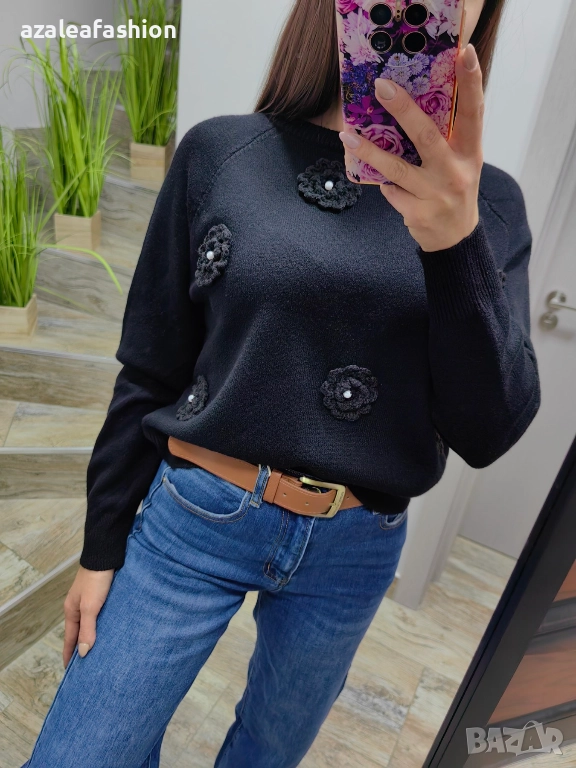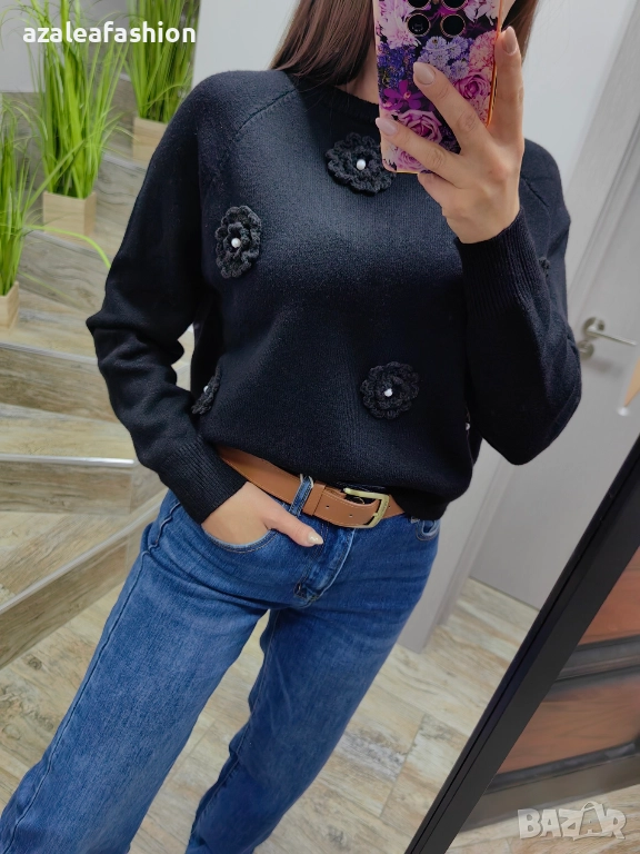 Дамски пуловер с цветя → Обява 52686340