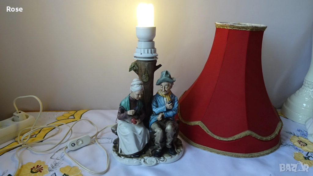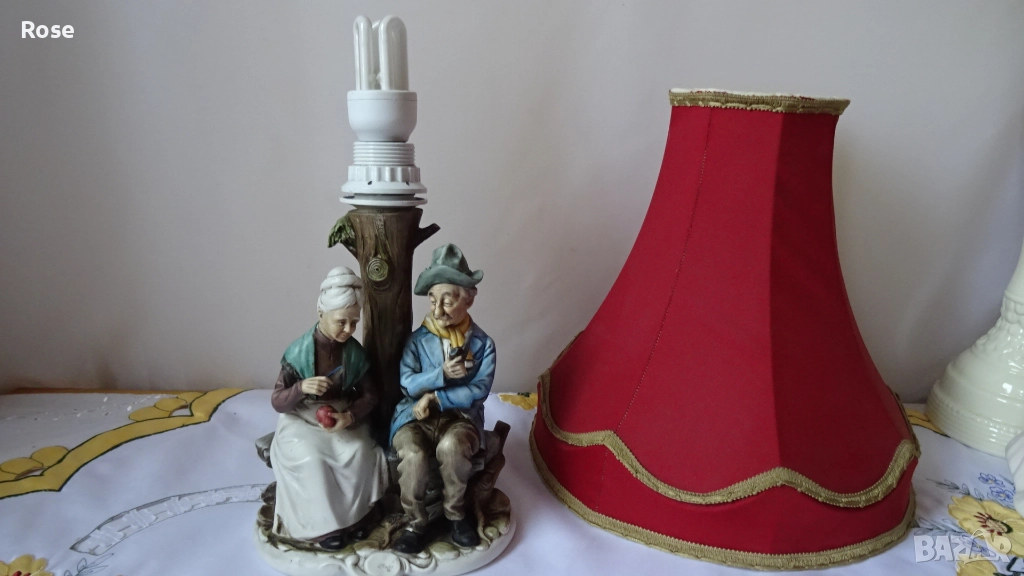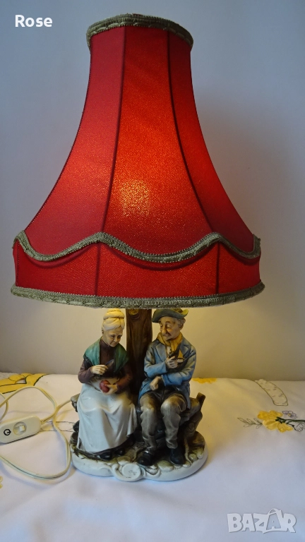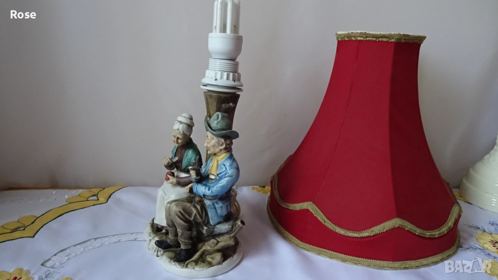 в стил- Capodimonte. Внос от Италия - 80-те години на миналия век. Допълнена със стар но запазен абажур.
