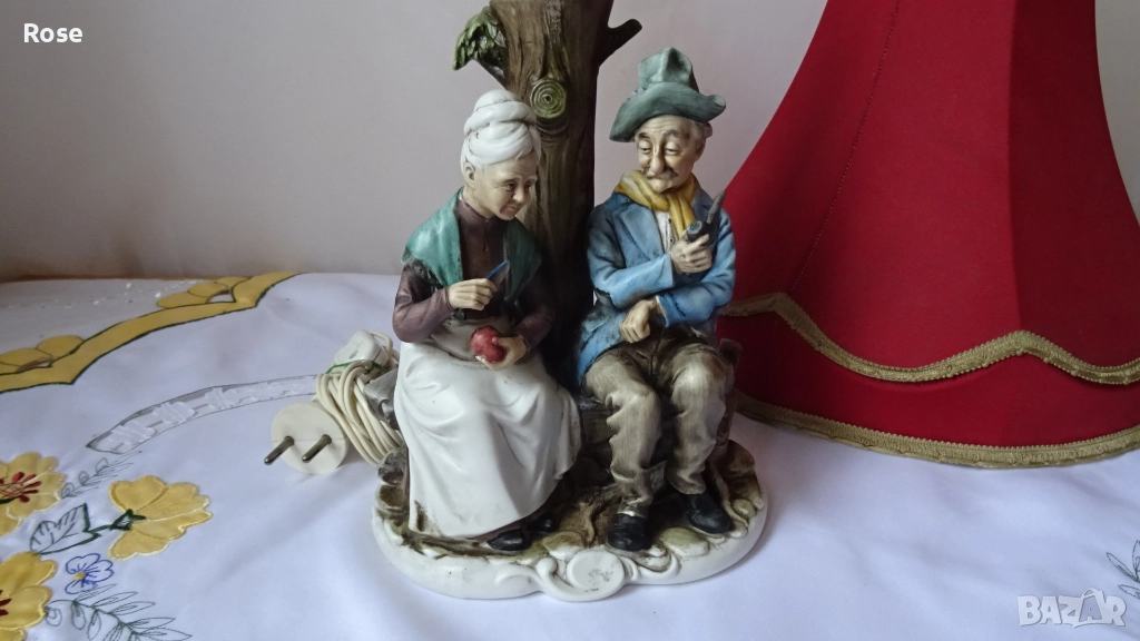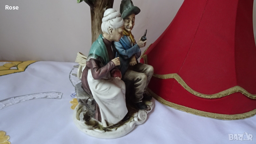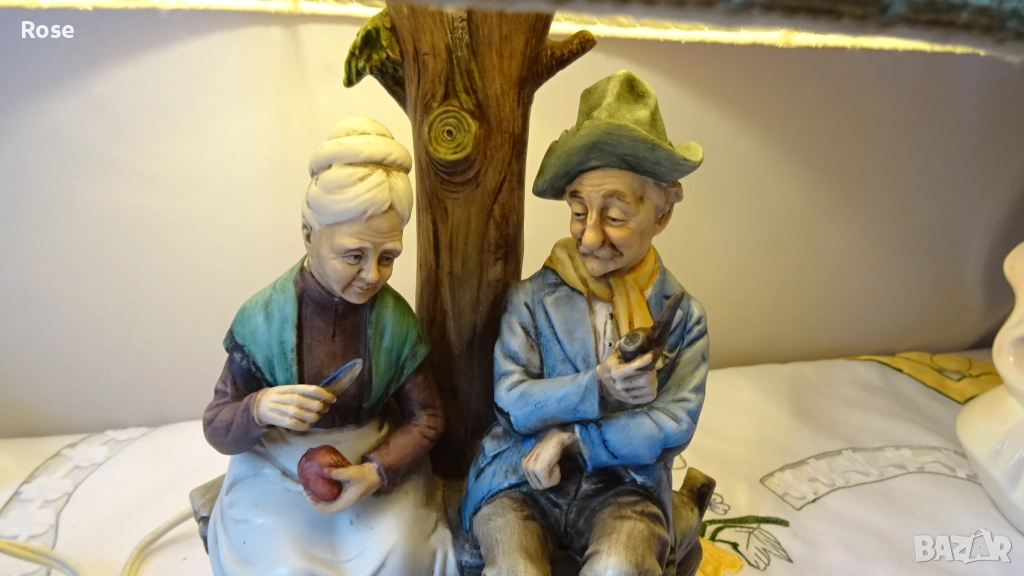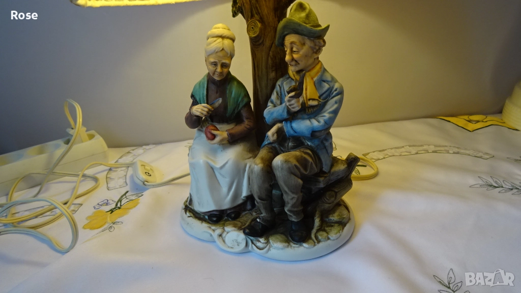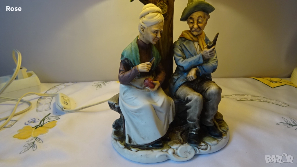 Лампа с фигурка на възрастна двойка, седнала на пейка